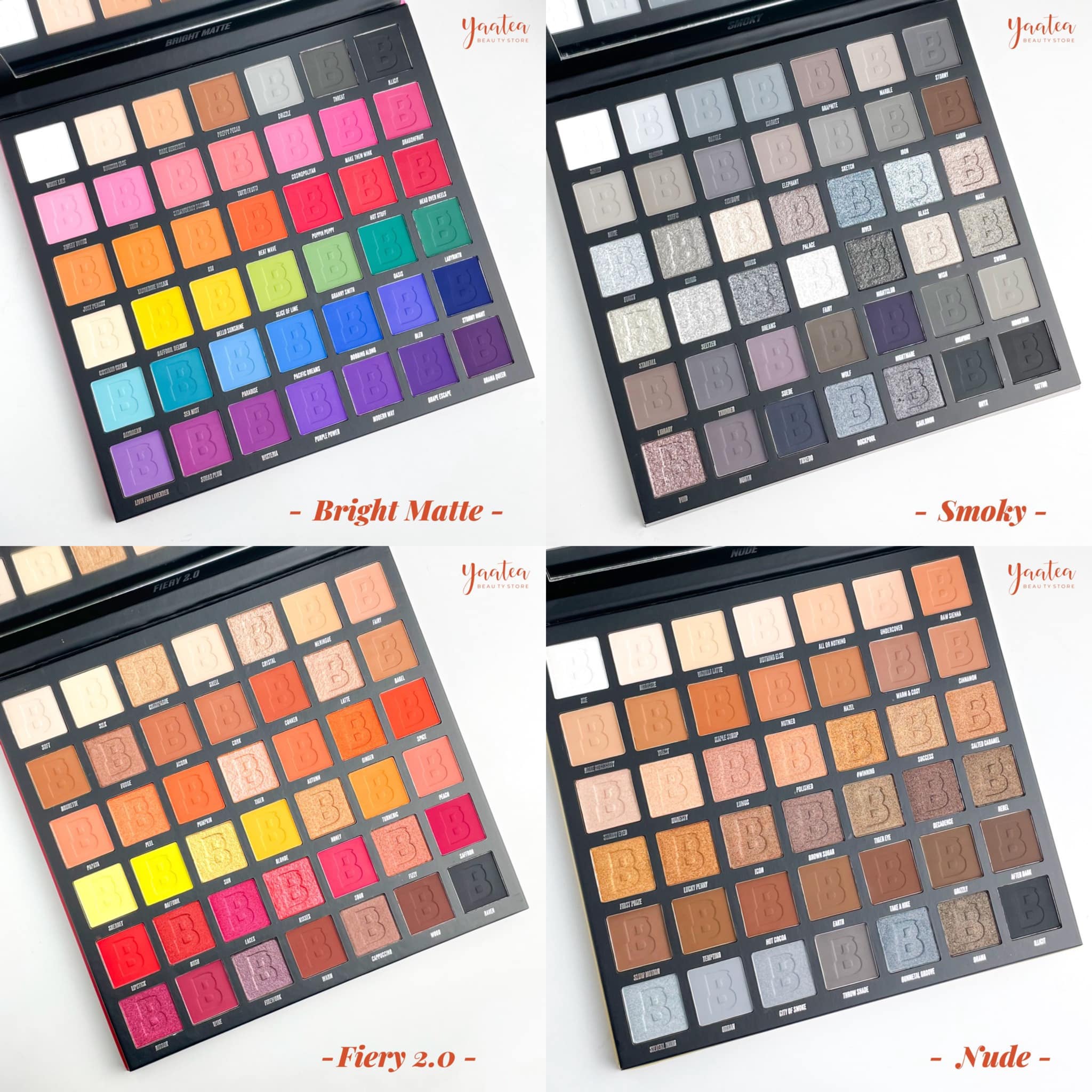 Bảng mắt 42 ô đình đám đã có mặt tại Yaatea với các phiên bản Rich, Fiery 2.0, Bright Matte, Neutral, Smoky và Nude, mang đến hàng loạt màu sắc để thỏa sức sáng tạo. Chất phấn bám tốt, bền màu với công thức độc quyền từ Beauty Bay, hứa hẹn sẽ là lựa chọn lý tưởng cho các makeup artist chuyên nghiệp.