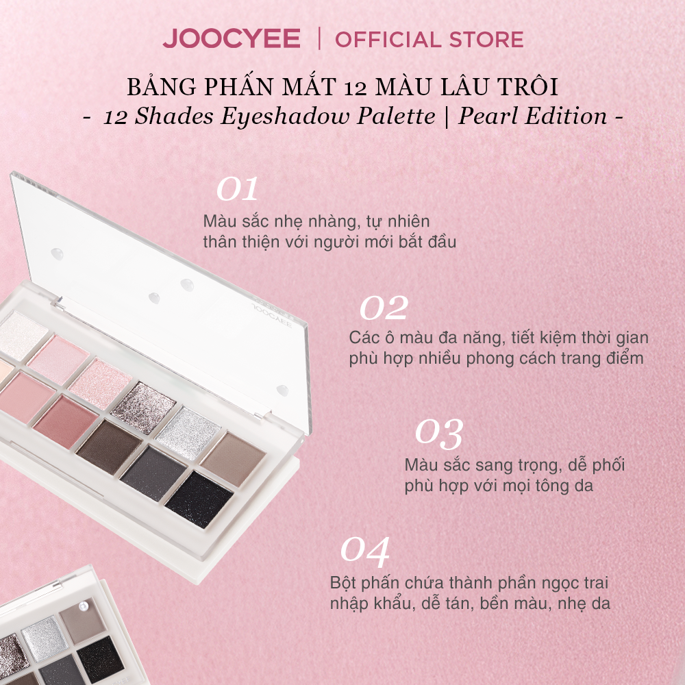 Bảng Phấn Mắt Joocyee 12 Shades Muilt-Use Palette 14g Lấy cảm hứng từ tinh hoa của ngọc trai, mỗi sản phẩm trong bộ sưu tập Pearl Collection góp phần tô điểm cho làn da rạng rỡ, trong trẻo. Mỗi sản phẩm được nghiên cứu kỹ lưỡng về màu sắc, kết cấu và độ hoàn thiện nhằm mang đến vẻ đẹp rạng rỡ, căng bóng đầy tươi mới cho bạn.