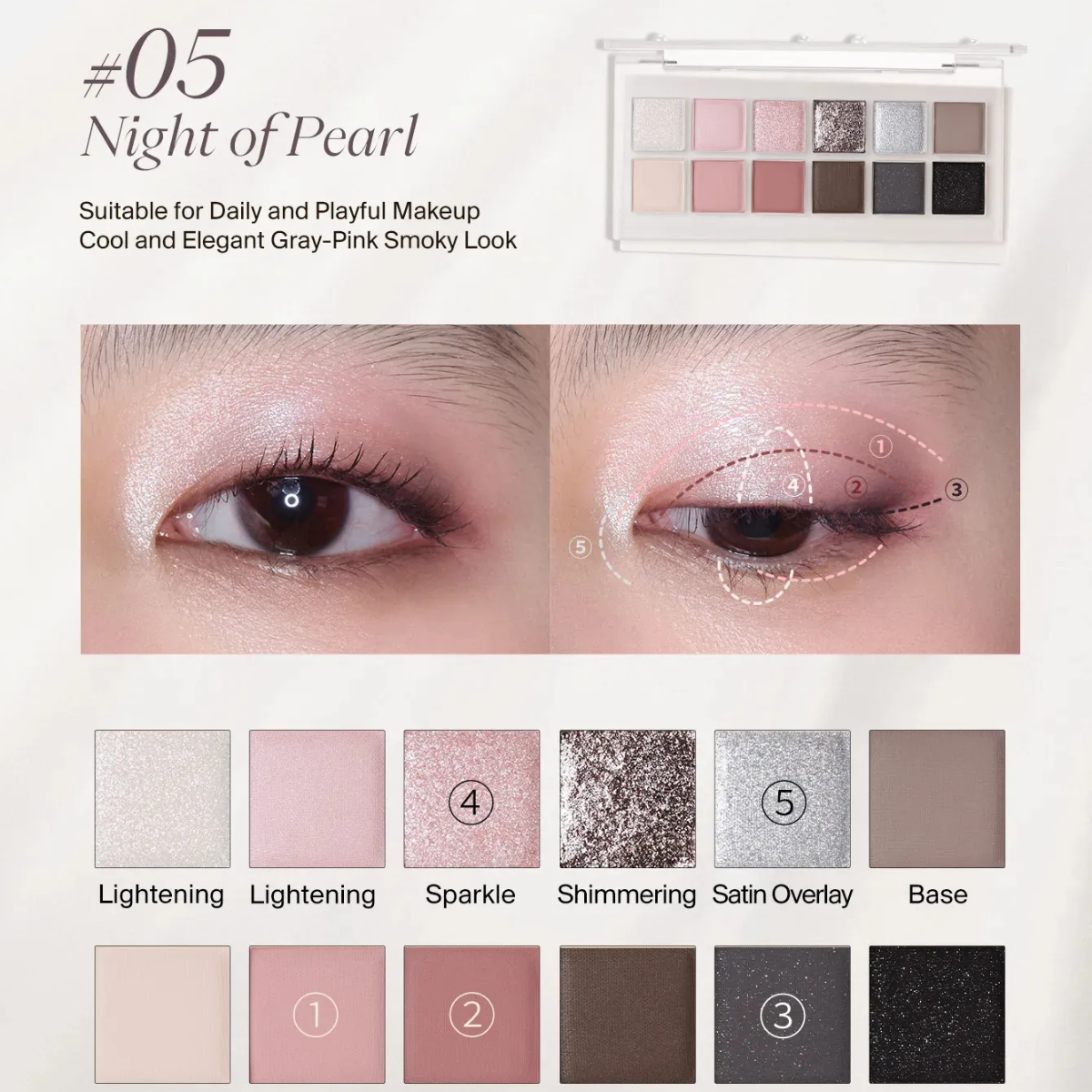– Bảng Phấn Mắt Ngọc Trai 12 Ô: Với sự kết hợp giữa 2 tone hồng lạnh và xám khói, kết hợp phấn lì và nhũ lấp lánh, bảng mắt là lựa chọn hoàn hảo cho makeup look hàng ngày lẫn đi tiệc.