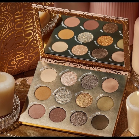 Boudoir Noir bao gồm 12 ô gồm tone màu vàng trầm ấm, trung tính có ánh nhũ lấp lánh mang đến những kiểu makeup look cực kỳ rực rỡ và đặc biệt. Nhanh chóng tạo được một kiểu look hoàn thiện với đầy đủ màu nền và màu nhấn. Thiết kế có gương tiện lợi cho các nàng sử dụng.