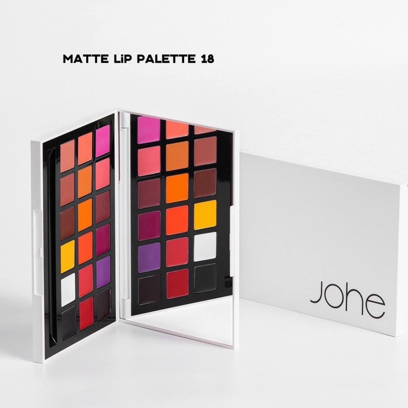 – Bảng son Johe xịn xò từ Hàn Quốc là một bảng màu môi chuyên nghiệp gồm 18 ô màu có đầy đủ các sắc thái từ cơ bản, neutral đến những tone màu sáng táo bạo.