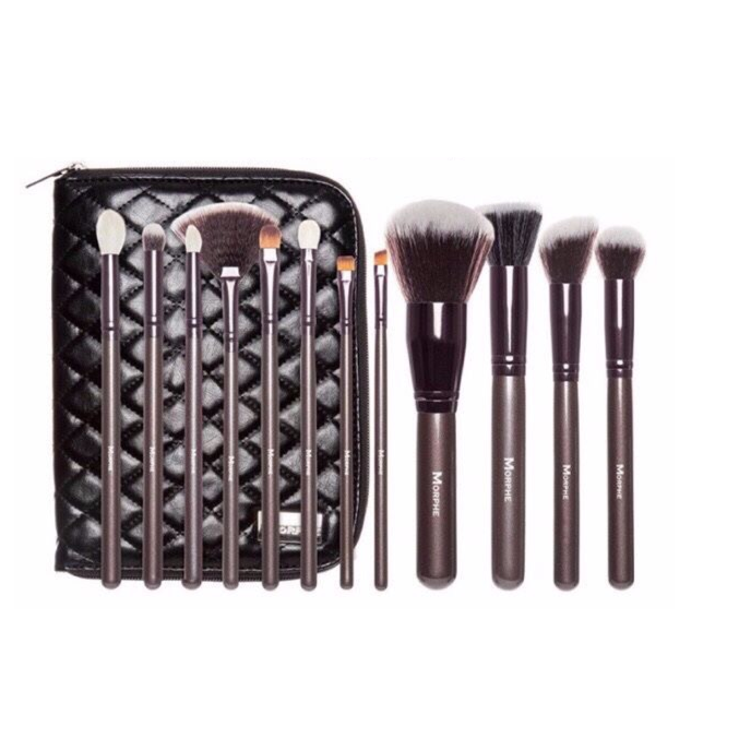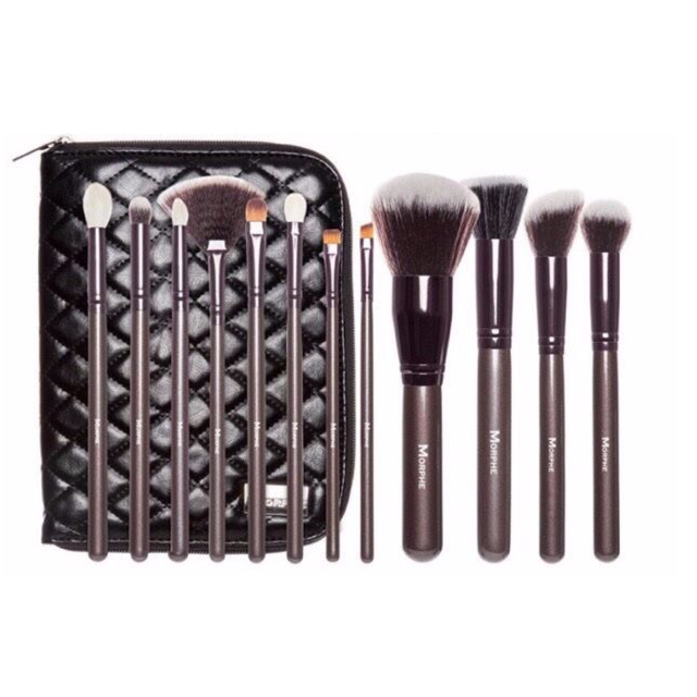 -Là một trong những set cọ đẹp nhất của hãng Morphe, gồm 12 cọ trang điểm chuyên nghiệp với thiết kế đồng nhất màu thiếc cực đẹp và cá tính, đi kèm với ví da sang trọng. Lông cọ từ chất liệu thiên nhiên và nhân tạo cao cấp.