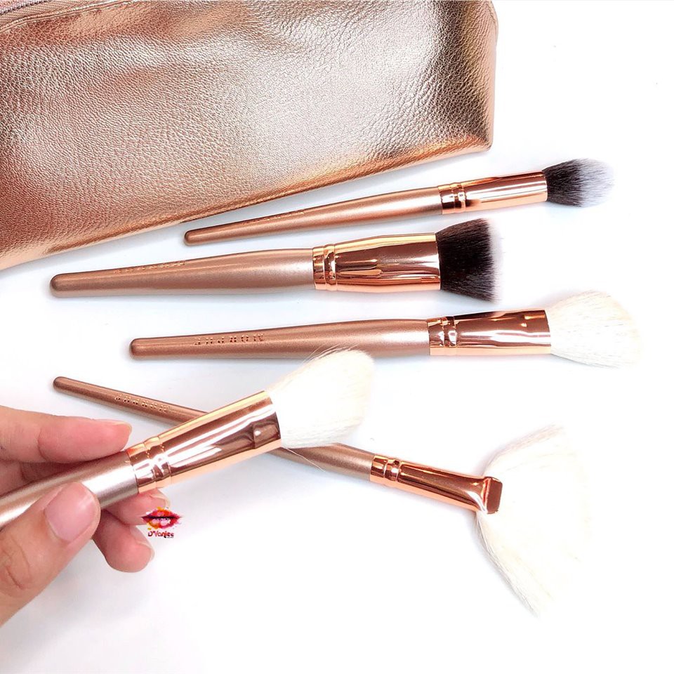 -Bộ cọ còn đi kèm túi đựng tone gold sang chảnh. Thiết kế túi đựng tiện dụng giúp các nàng có thể bỏ gọn trong túi xách và mang theo khi ra ngoài.