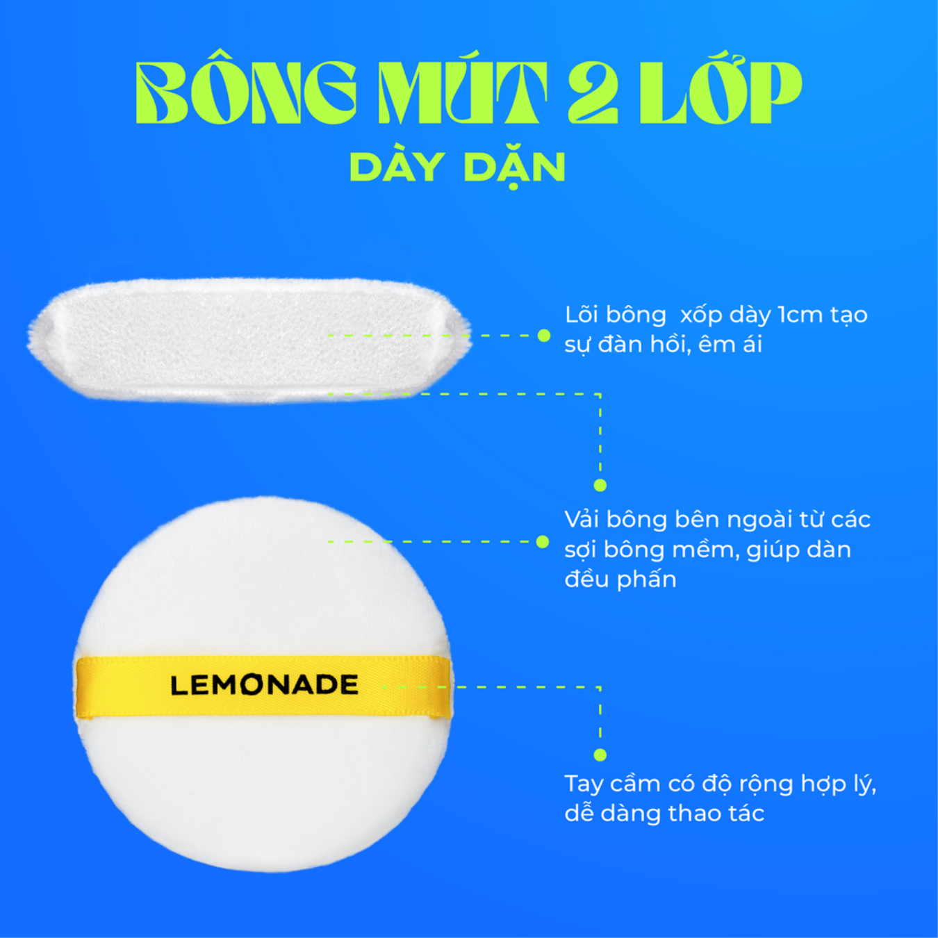 Bông Phấn Phủ Lemonade Loose Powder Puff Set 2 bông với công nghệ Rubycall tiên tiến, mang đến cho bạn lớp nền mỏng mịn, tự nhiên một cách dễ dàng.