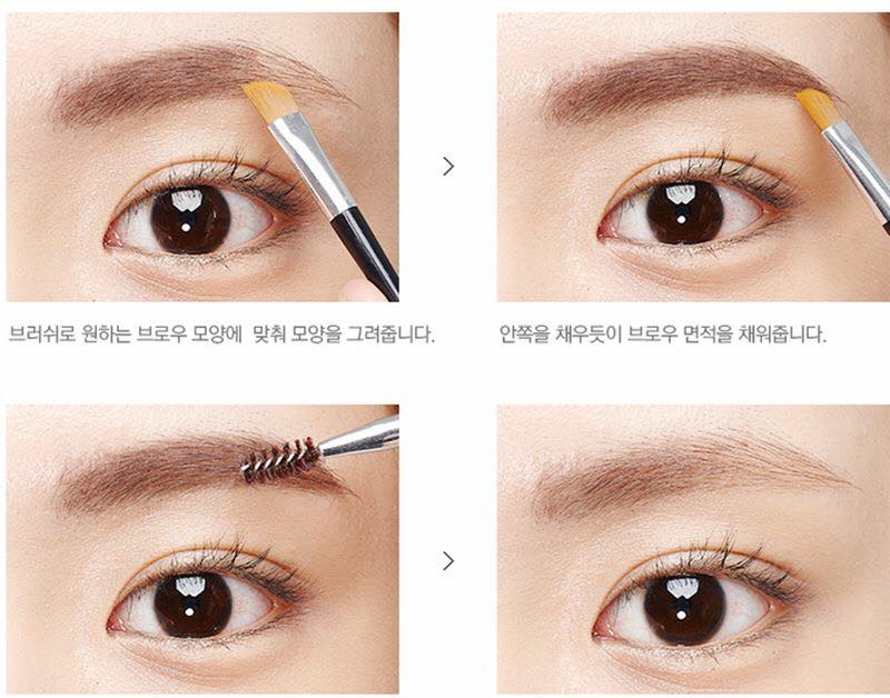 – Dùng cọ chải, vuốt đều cho chân mày vào khuôn. Dùng cọ còn lại tán màu lên chân mày nhạt ở đầu và đậm dành về sau đuôi mày. Có thể pha trộn 2 màu đậm nhạt để tạo sự phá cách. Sau đó dùng ngón tay thoa nhẹ lại chân mày đã tán bột để tạo nét tự nhiên.