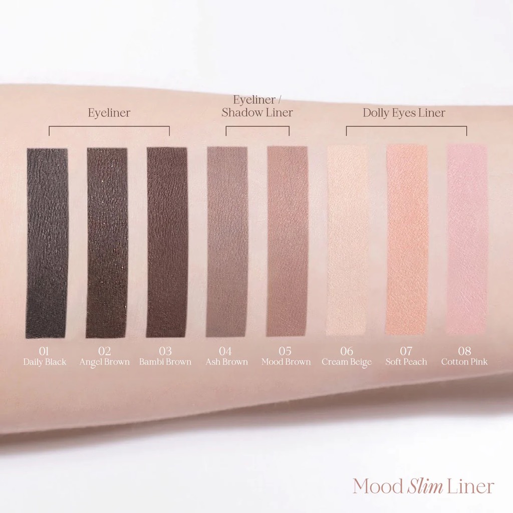 Kẻ Mắt Dasique Mood Slim Eyeliner là một loại bút kẻ mắt dạng gel mỏng có 8 màu, mỗi màu có độ hoàn thiện tinh tế và tự nhiên.