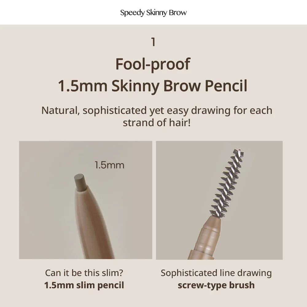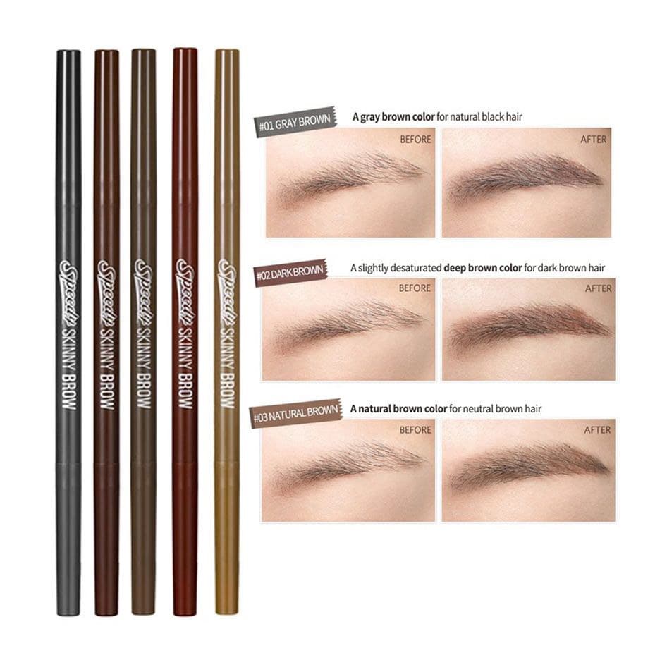 – Chì Vẽ Chân Mày Peripera Speedy Skinny Brow đầu bút chì siêu mảnh 1.5mm có thể phủ lên được những sợi chân mày nhỏ nhất, mang lại màu sắc rất tự nhiên. Chất chì mềm mịn, dễ tán đều và không vón cục