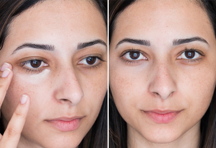 -Dùng tay hoặc cọ thoa đều che khuyết điểm lên mặt,không bỏ qua bất kì khuyết điểm nào trên khuôn mặt.