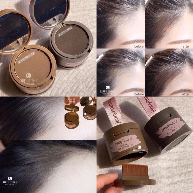 – Dặm Phấn Kèm Cọ Che Phủ Chân Tóc Jenny House Self-Up Hair Line Brush lên các vùng tóc thưa mong muốn.