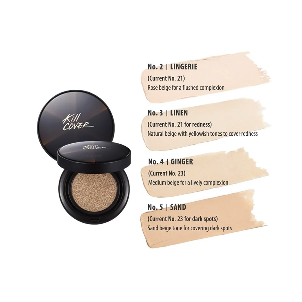 Cushion Clio Kill Cover Founwear Cushion All New SPF 50 là dòng cushion mới nhất của Clio được ra mắt vào đầu năm 2021. Dòng All New là phiên bản mới nhất của Clio Kill Cover Founwear Cushion XP. Cushion với đủ tiêu chí che phủ đỉnh – bám lâu – và finish căng bóng tự nhiên phù hợp da khuyết điểm.