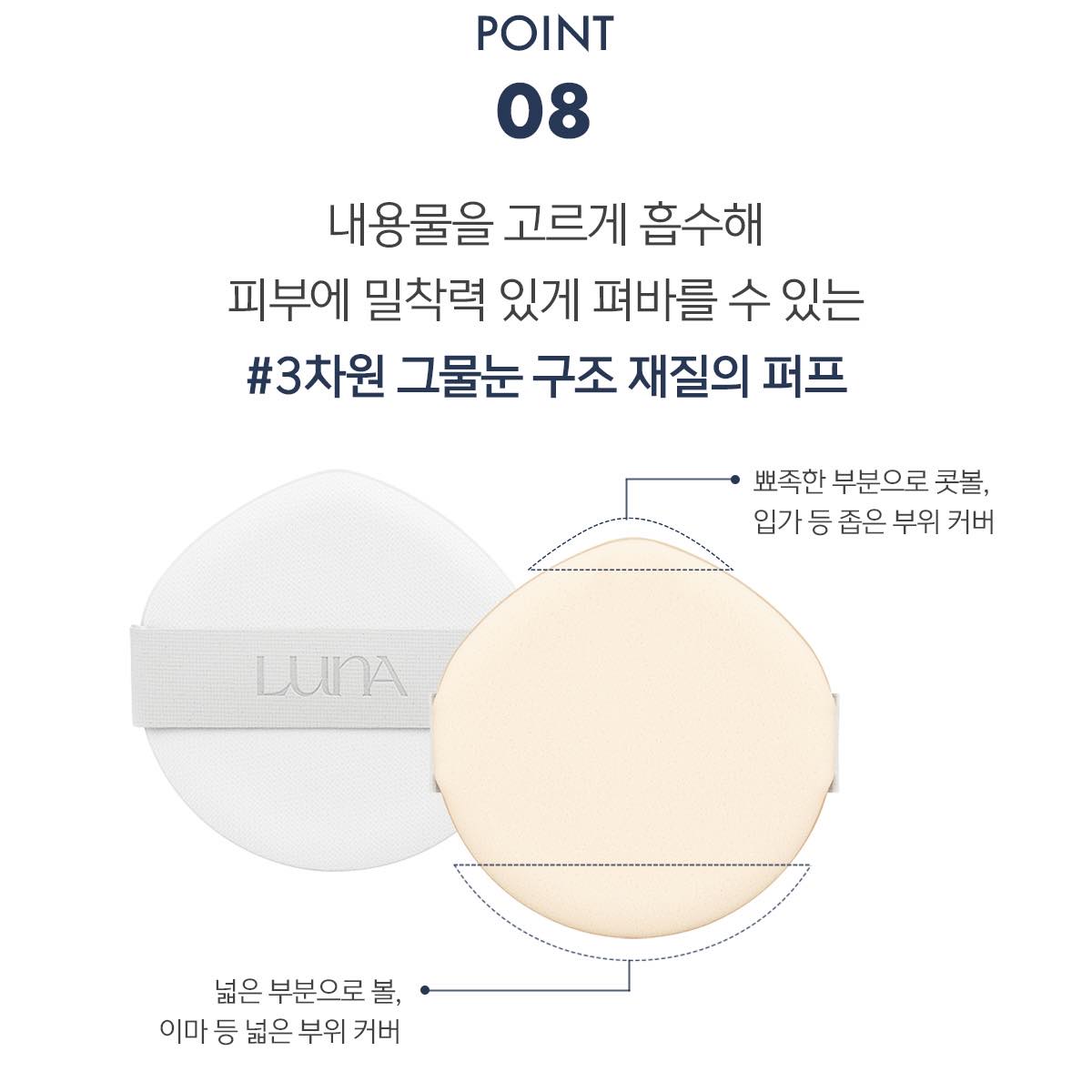 – Bông phấn có cấu trúc lưới 3D hấp thụ đồng đều và bám dính lâu trên da. Sử dụng mặt nhọn để che những vùng hẹp bao gồm vùng chóp mũi và miệng, còn mặt rộng để che má và trán.