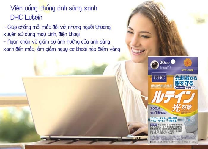 – Viên uống chống ánh sáng xanh DHC Lutein giúp chống mỏi mắt đối với những người thường xuyên sử dụng máy tính, điện thoại trong thời gian dài.