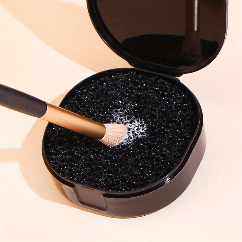 – Nhanh chóng làm sạch phấn bám trên đầu cọ chỉ bằng một động tác quẹt nhẹ đầu cọ lên bề mặt mút mà không cần phải dùng đến nữa.