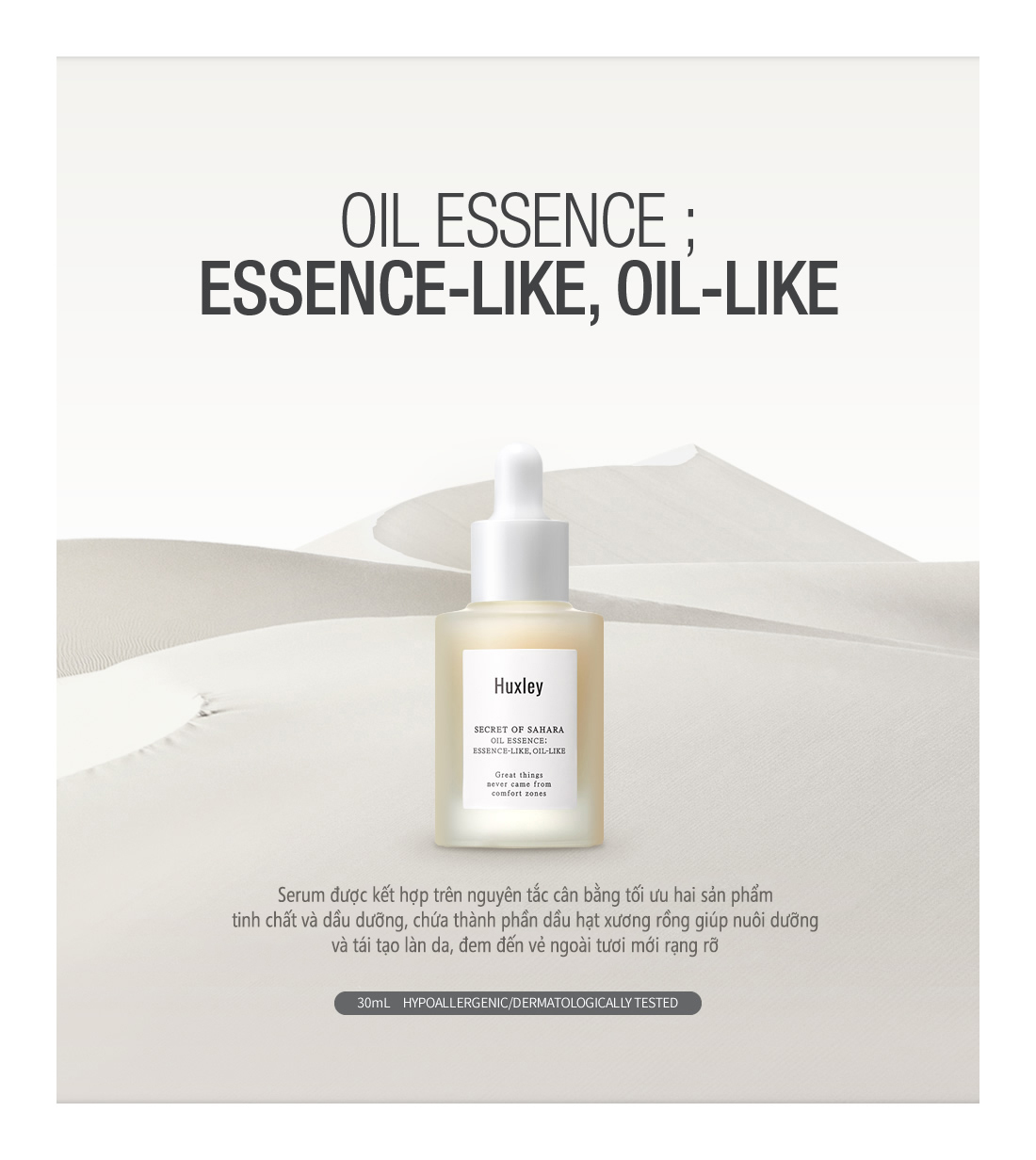 Tinh Dầu Dưỡng Ẩm Huxley Secret Of Sahara Oil Essence Essence Like Oil Like là một dòng sản phẩm thuộc thương hiệu mỹ phẩm nổi tiếng Huxley. Với bảng thành phần có chiết xuất từ tự nhiên như hạt xương rồng hữu cơ, sản phẩm này vẫn đang “làm mưa làm gió” trên thị trường và được lòng người sử dụng.