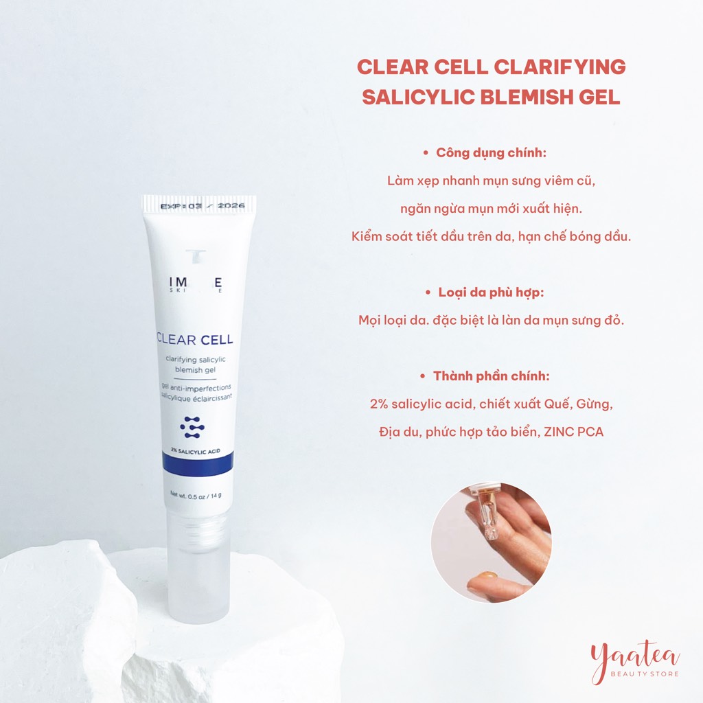 Gel chấm mụn Image Clear Cell Clarifying Salicylic Blemish Gel chứa 2% Salicylic Acid, tăng cường loại bỏ mụn, làm giảm thâm và hỗ trợ se khít lỗ chân lông.