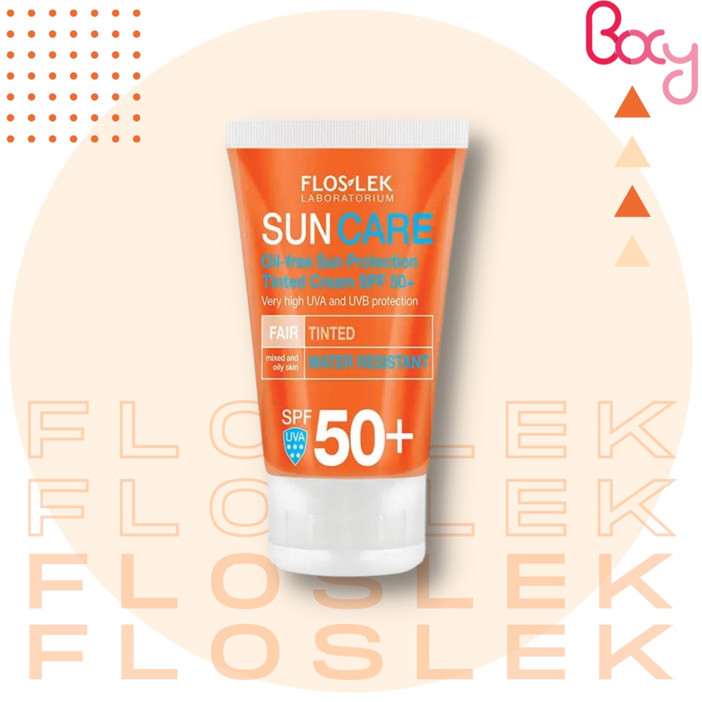 Kem chống nắng Floslek Sun Care Oil Free Sun Protection Tinted Cream SPF50+ chứa phức hợp Seboregulating, tinh thể sữa, Vitamin E, chiết xuất bơ… giúp bảo vệ da khỏi tác động của môi trường, chống lại bức xạ từ tia UVA, UVB, hỗ trợ điều chỉnh hoạt động của tuyến bã nhờn, chống lại các gốc tự do, hỗ trợ làm giảm quá trình lão hóa da. Đặc biệt, kem có chỉ số chống nắng cao giúp bạn thoải mái hoạt động ngoài trời mà không lo ảnh hưởng đến làn da. Sản phẩm phù hợp với da hỗn hợp và da dầu.