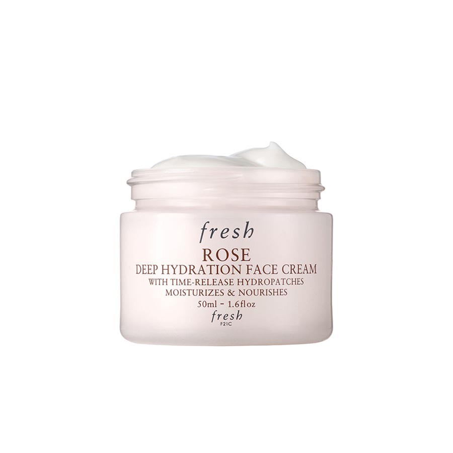 Kem Dưỡng Ẩm Fresh Rose Deep Hydration Face Cream là lọ kem dưỡng best-seller của hãng nhận được nhiều review đánh giá tích cực. Fresh Rose Face Cream là một loại kem dưỡng ẩm tuyệt vời, chất kem gel nhẹ kết hợp từ nước và dầu hoa hồng nhẹ nhàng nuôi dưỡng da và được mô tả là một sản phẩm có thể cung cấp độ ẩm mạnh mẽ lên đến 24 giờ.