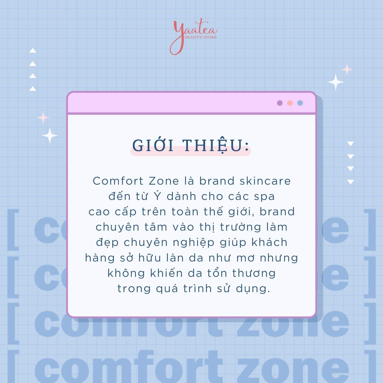 Vài nét về thương hiệu: Comfort Zone được biết đến là một thương hiệu chăm sóc da chuyên nghiệp của tập đoàn Davines đến từ nước Ý. Với các sản phẩm chăm sóc da đến từ thương hiệu đình đám Comfort Zone, người dùng hoàn toàn tin tưởng vào những giá trị đích thực mà hãng đem lại. Đặc biệt sản phẩm chứa đến 92% thành phần nguồn gốc từ thiên nhiên an toàn cho mọi loại da.