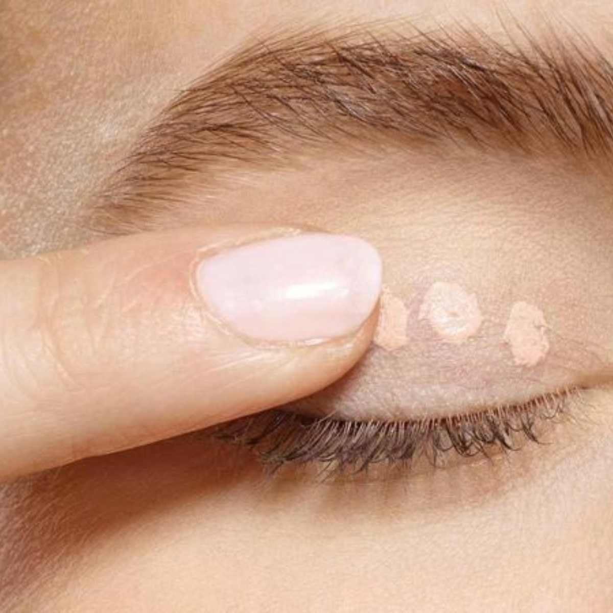 – Dùng đầu ngón tay thoa một lượng nhỏ kem lót, sau đó thoa lên mí mắt, đợi một lát trước khi thoa phấn mắt.