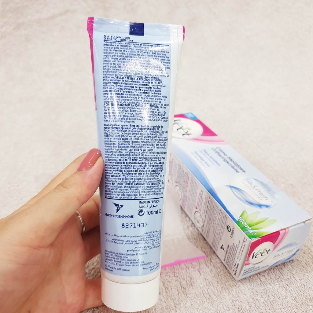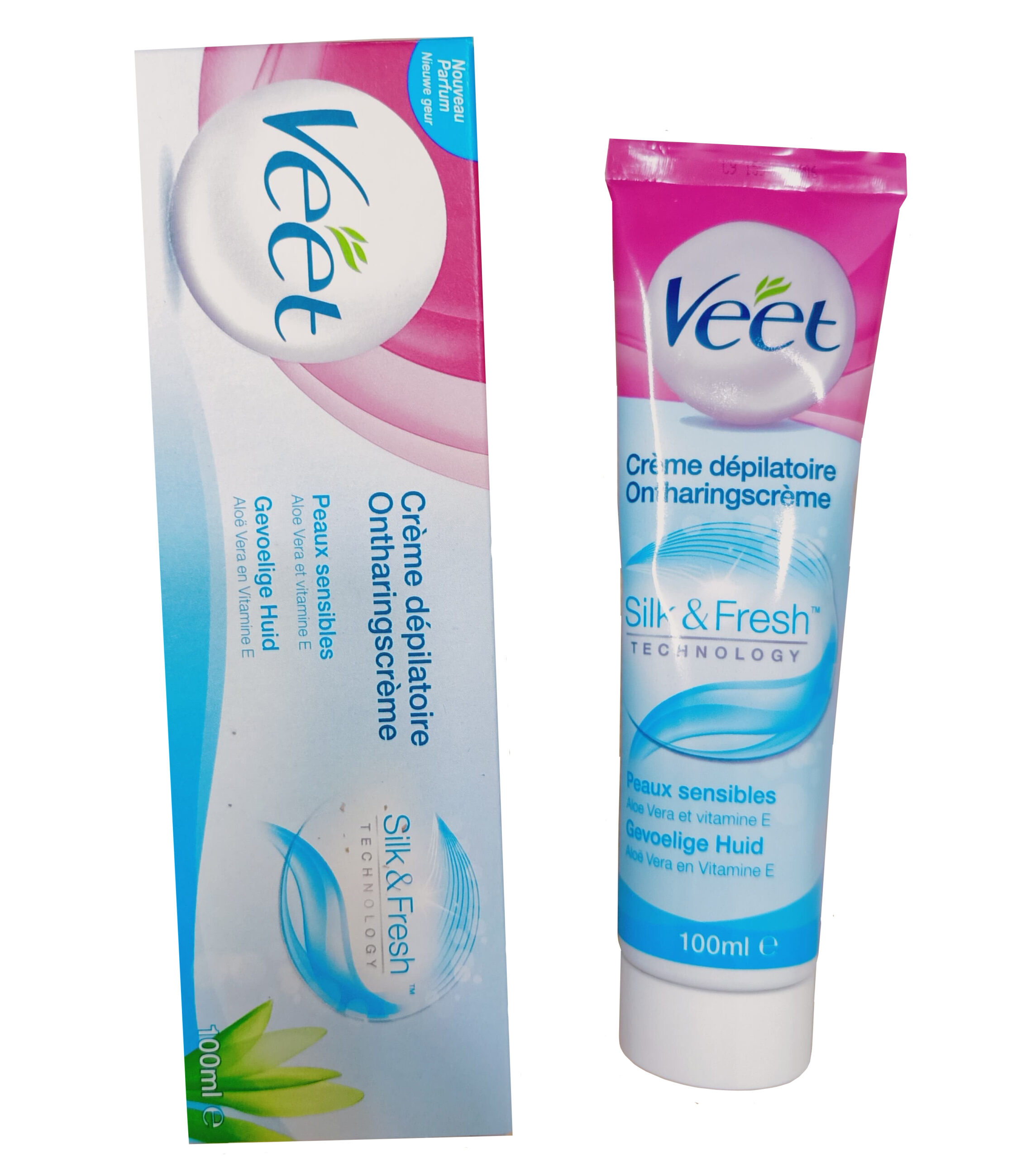 Kem có thể sử dụng cho tay, cánh tay, chân, và phần bikini (không dùng cho mặt vì da mặt mỏng hơn). Mỗi một hộp Veet chứa một tuýp kem 100ml, kèm một thanh nhựa thoa kem.