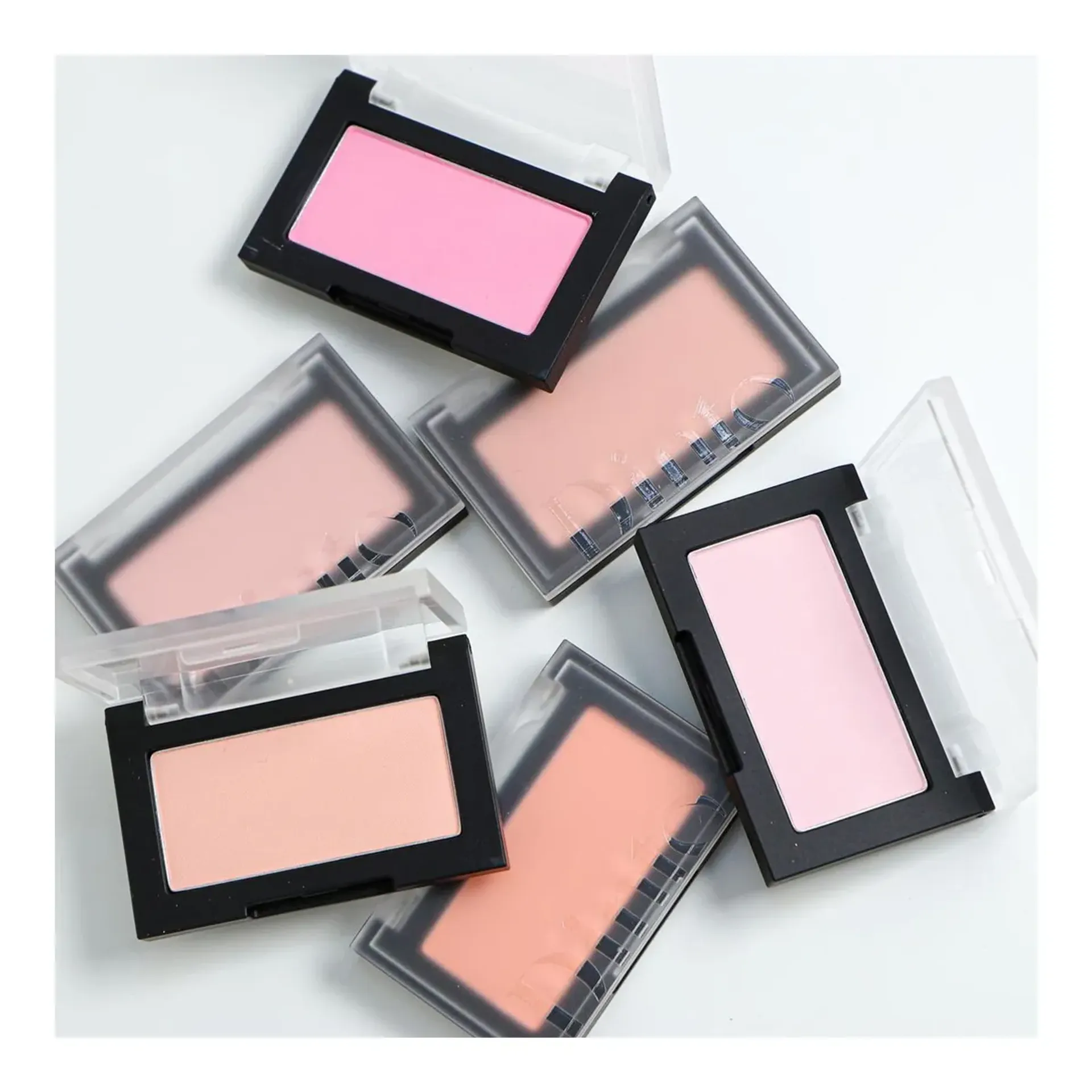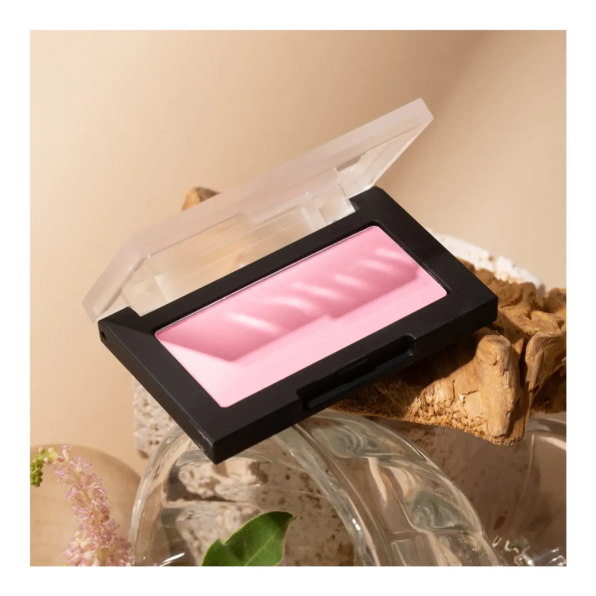 Hộp chữ nhật nhỏ gọn, có nắp trong mờ giúp nhìn được màu phấn bên trong.
