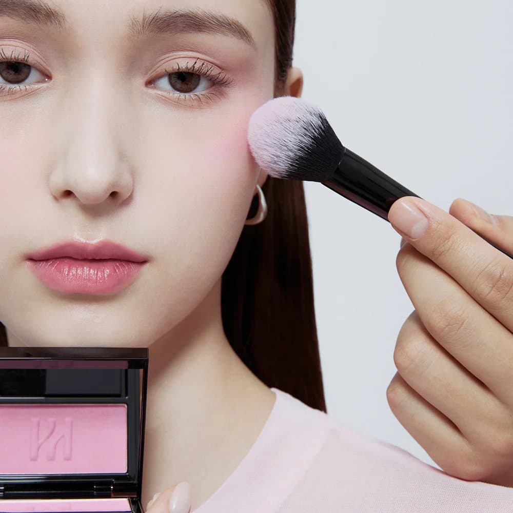 Sử dụng cọ trang điểm lấy một lượng sản phẩm vừa đủ tán nhẹ tay lên vùng má.