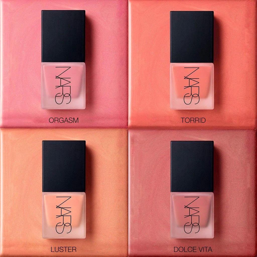 – Orgasm: Là màu hồng đào ánh nhủ vàng lấp lánh rất nổi tiếng của Nars. Màu này gam màu được Nars áp dụng để tung ra nhiều sản phẩm và cũng là một trong những màu sắc nổi bật làm nên tên tuổi của Nars.