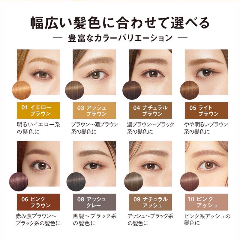 – Khả năng bám màu cao, chống trôi khi tiếp xúc với mồ hôi, nước, bã nhờn và cọ xát. Với sắc màu tự nhiên tạo tên đôi chân mày thời thượng, mềm mại tự nhiên.