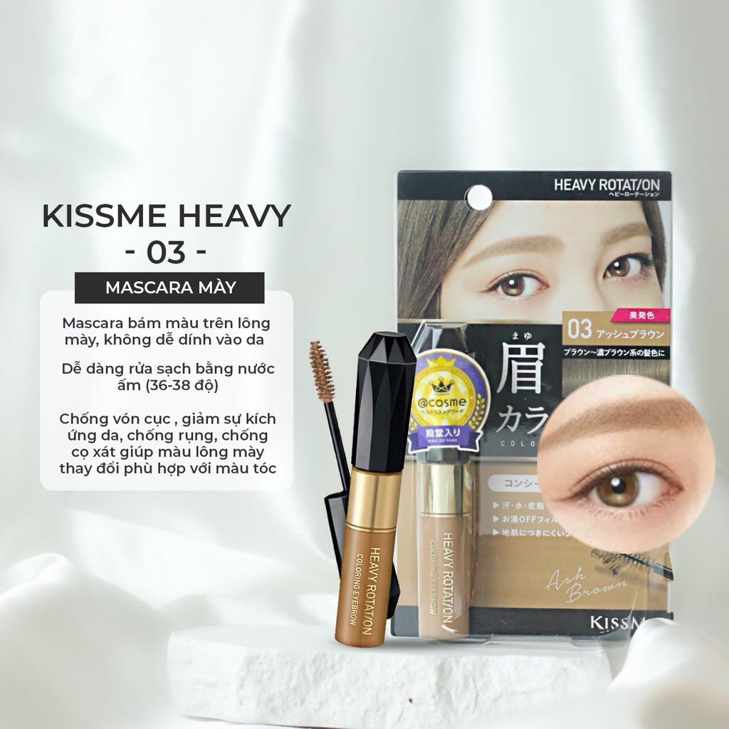 Mascara Lông Mày Kissme Heavy Rotation Coloring Eyebrow 8g là sản phẩm dành cho lông mày đến từ thương hiệu mỹ phẩm Kiss Me của Nhật Bản, giúp tạo lông mày rõ nét hơn, tạo sợi chân mày thời thượng đặc biệt với bảng màu đa dạng thích hợp cho nhiều màu tóc khác nhau.