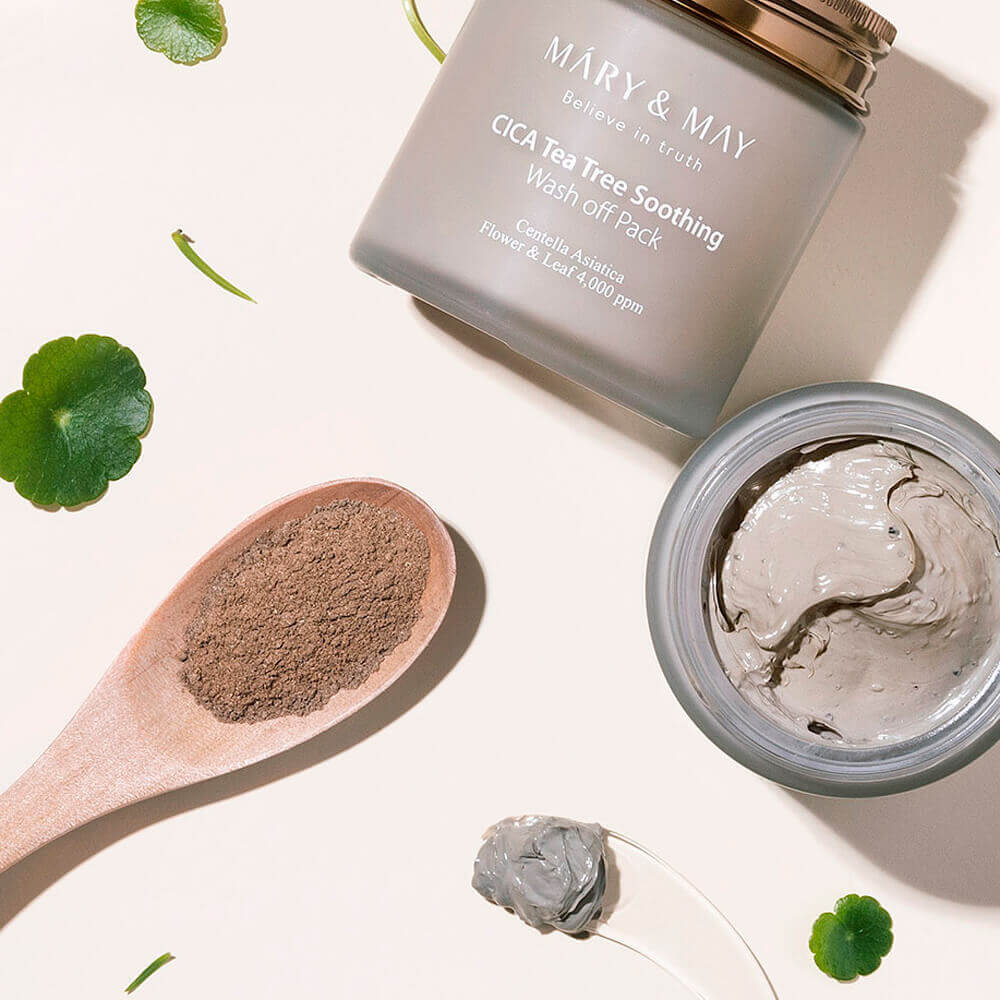 Mặt Nạ Dưỡng Da Chiết Xuất Tràm Trà Mary & May Cica Tea Tree Soothing Wash Off Pack với các chiết xuất từ thiên nhiên như tràm trà, rau má và rau diếp cá giúp làm sạch sâu từng lỗ chân lông, làm dịu và nuôi dưỡng làn da khỏe mạnh, rạng rỡ.