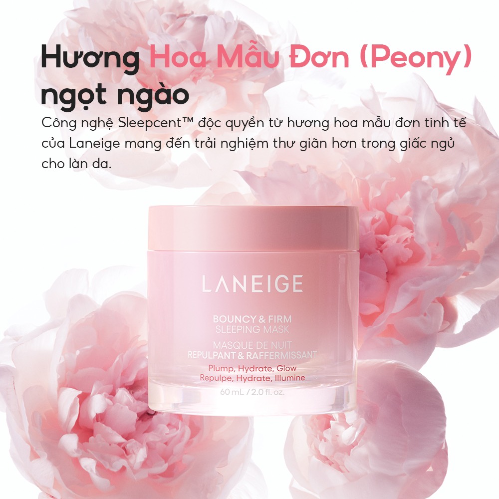 Mặt Nạ Ngủ Laneige Bouncy & Firm Sleeping Mask là giải pháp hoàn hảo giúp cung cấp độ ẩm sâu, nuôi dưỡng làn da căng mịn suốt đêm. Được chiết xuất từ phức hợp hoa mẫu đơn và collagen, sản phẩm hỗ trợ tăng cường độ săn chắc, cải thiện nếp nhăn và đem lại làn da đàn hồi, tươi sáng hơn.