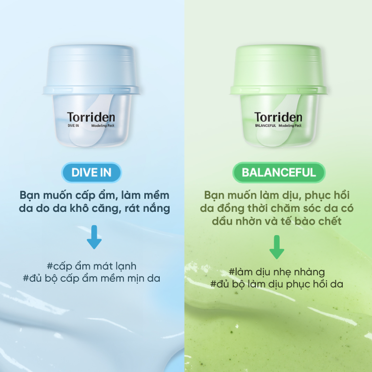 – Torriden Modeling Pack là mặt nạ dạng thạch dẻo tự trộn tại nhà, cho hiệu quả làm dịu, nuôi dưỡng và thư giãn da y như trải nghiệm tại spa.