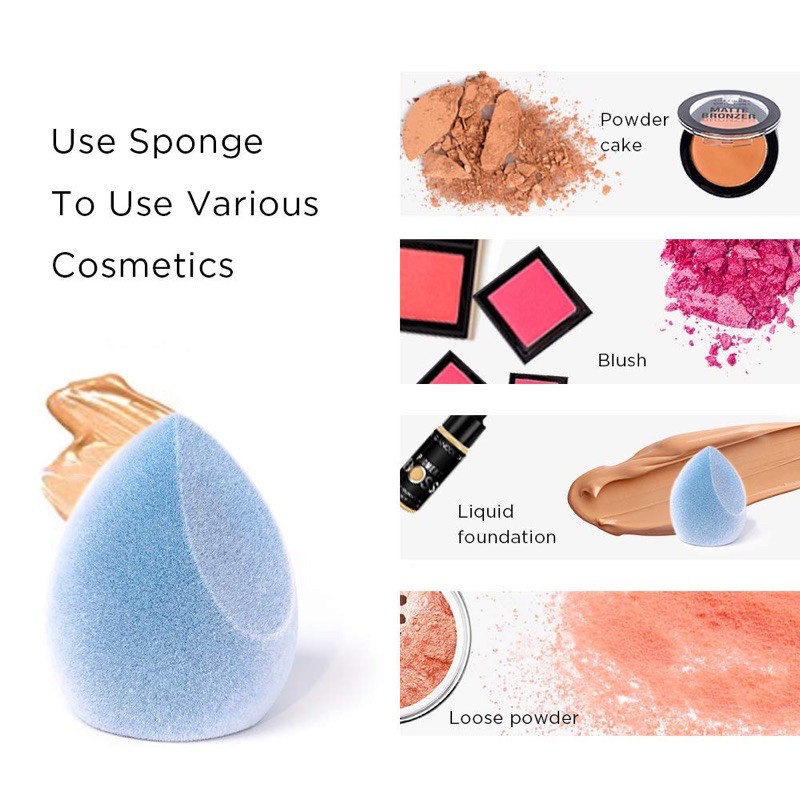 – Thay thế các loại cọ: Vì mút được bao bọc bởi lớp sợi siêu mỏng mịn, nên khi ta lấy sản phẩm đánh lên da thì sản phẩm được khóa ngay lập tức trên da như sử dụng 1 cây cọ. Cho dù là ướt hay khô, kem nền hay phấn nền thì mút cũng cực dễ dàng nhẹ nhàng thẩm thấu sản phẩm vào da. Tạo nên 1 lớp nền hoàn hảo.