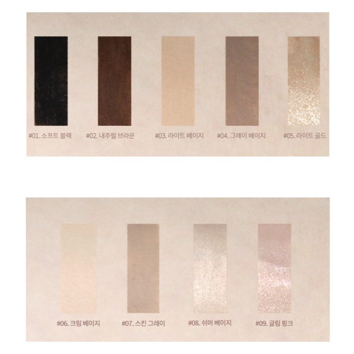 – Màu sắc hàng ngày với các đường kẻ, tối và sáng sống động cùng một lúc. Từ những đường kẻ sáng đến bóng mềm mại đến nhũ mắt để hoàn thiện lớp trang điểm mắt của bạn. Kết cấu dạng kem không gây kích ứng.