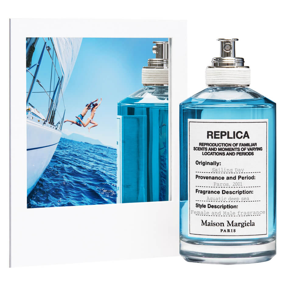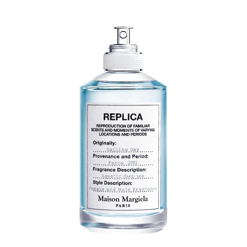 Replica Sailing Day là một trong những dòng nước hoa unisex thành công nhất đến từ Maison Martin Margiela trong bộ sưu tập Replica, dùng được cho cả nam và nữ. Được lấy cảm hứng của hương thơm từ đại dương thu nhỏ, vị mặn của muối biển sẽ mang lại cho bạn cảm giác như được lặn sâu xuống đại dương và cảm nhận sự sảng khoái mát lạnh đầy kỳ thú của hoa hồng và hương Amyl Salicylate. Sailing Day mang tới cho bạn sự gần gũi với gió của biển, dòng nước xanh trong của đại dương.