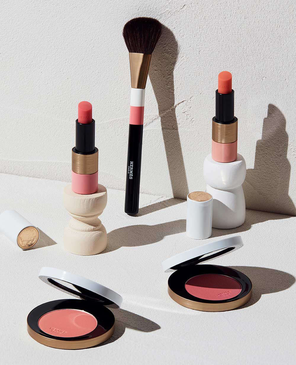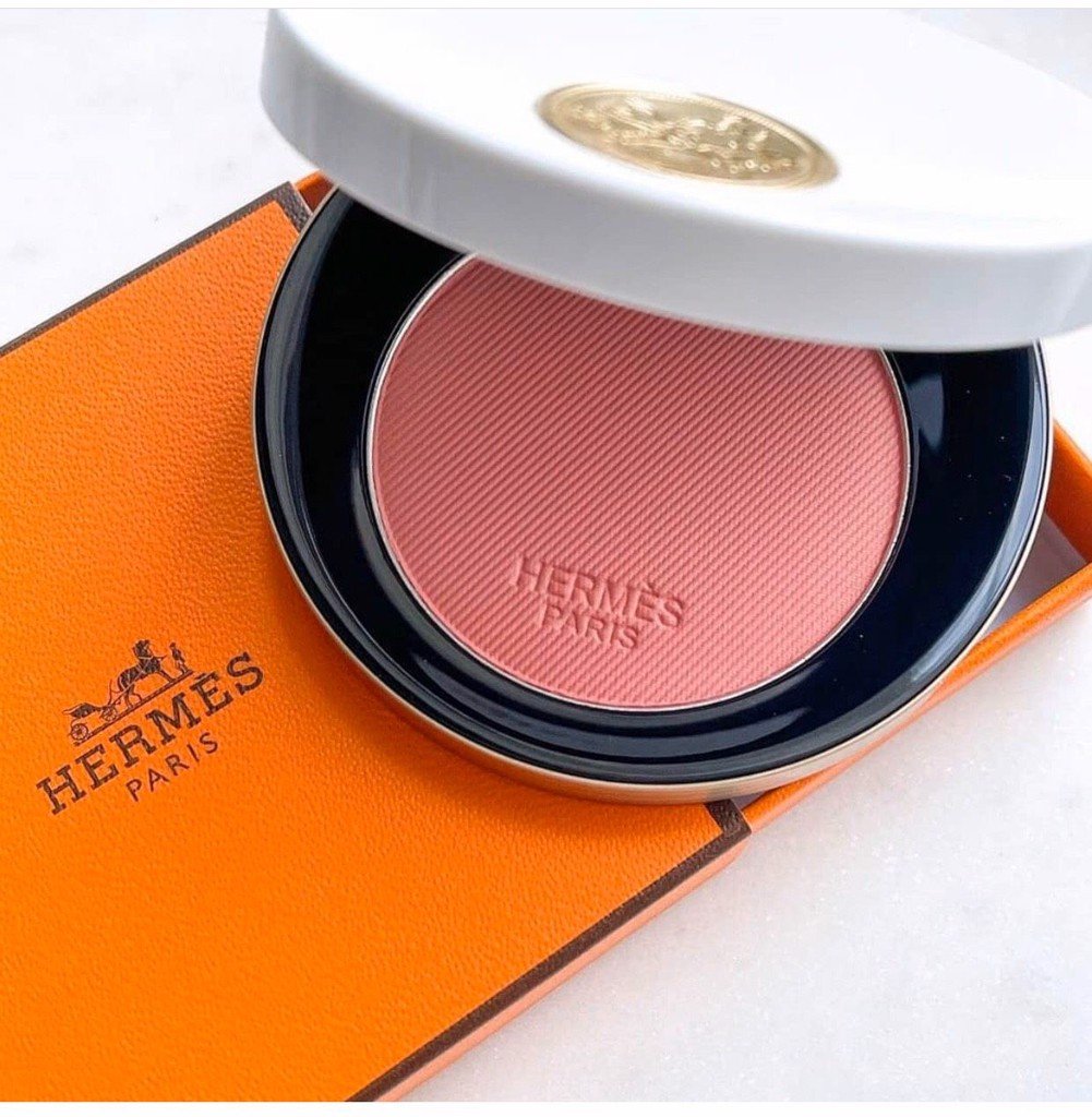 Các sản phẩm má hồng được đựng trong hộp tông vàng và trắng. Trên nắp bao bì là biểu tượng màu vàng ánh kim xa xỉ của thương hiệu Pháp. Bề mặt phấn có vân nhẹ, mô phỏng kỹ thuật dệt vải twill cho những chiếc khăn lụa tơ tằm Hermès.