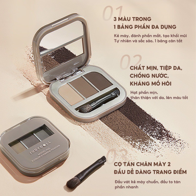 Bột tán mày Judydoll 3 Ô là sản phẩm làm đẹp không thể thiếu trong túi đồ trang điểm của các cô nàng hiện đại. Với thiết kế nhỏ gọn, tiện lợi cùng bảng màu đa dạng, sản phẩm giúp bạn dễ dàng tạo nên đôi mày sắc nét, tự nhiên và bền màu suốt cả ngày dài.