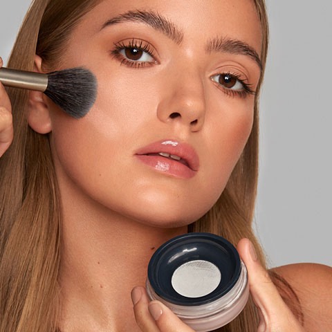 – Hoặc blend các màu lại với nhau bằng cọ rồi phủ phấn nhẹ nhàng lên da.