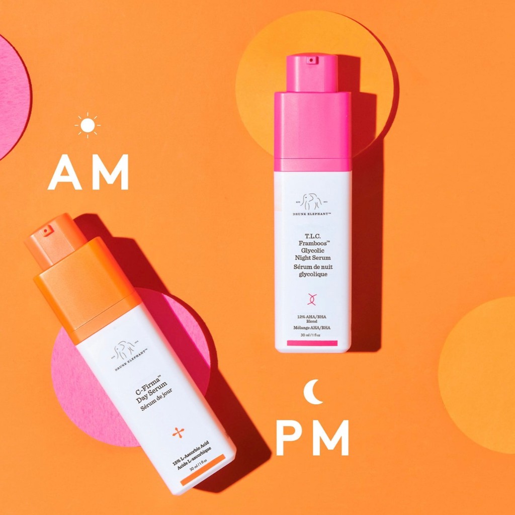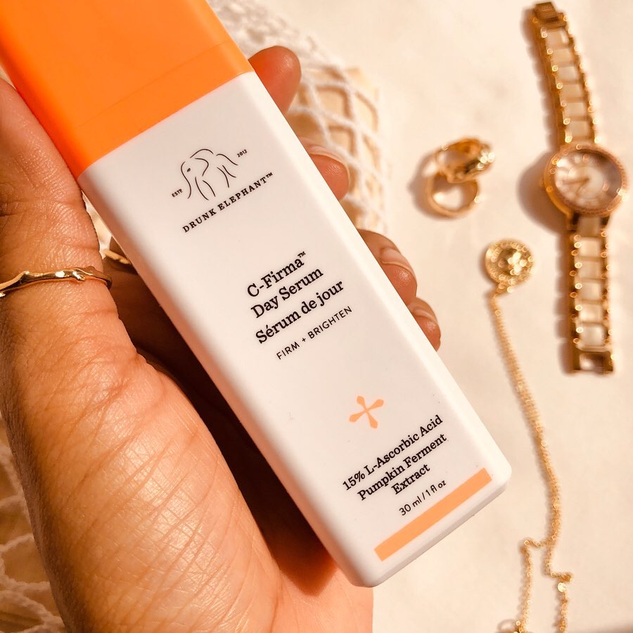 Serum làm sáng ban ngày Drunk Elephant C-Firma Day Serum là một loại serum vitamin C siêu mạnh được sáng chế với phức hợp chống oxy hóa mạnh mẽ, các chất dinh dưỡng thiết yếu, enzyme trái cây, chronopeptide và các lợi ích chống oxy hóa của vitamin D, tất cả được hòa quyện để làm nhiệm vụ cải thiện độ đàn hồi, làm săn chắc và làm sáng bề mặt da, đồng thời cải thiện các dấu hiệu của lão hóa.