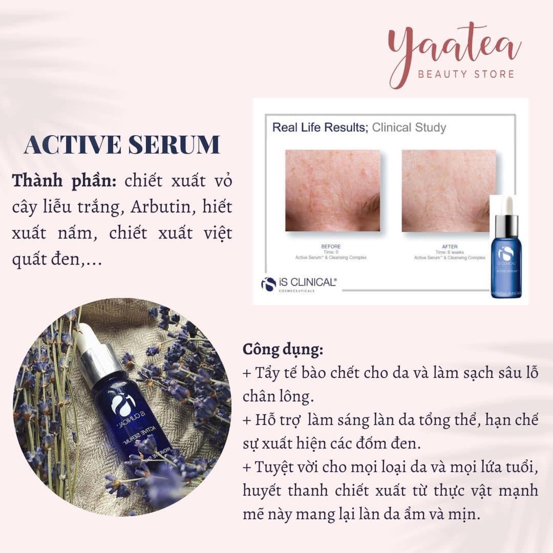 Serum iS Clinical Active Serum là dòng sản phẩm cao cấp của nhà sản xuất INNOVATIVE SKINCARE Hoa Kỳ giúp ngăn ngừa lão hóa, ngừa mụn và dưỡng da sáng trắng hiệu quả.