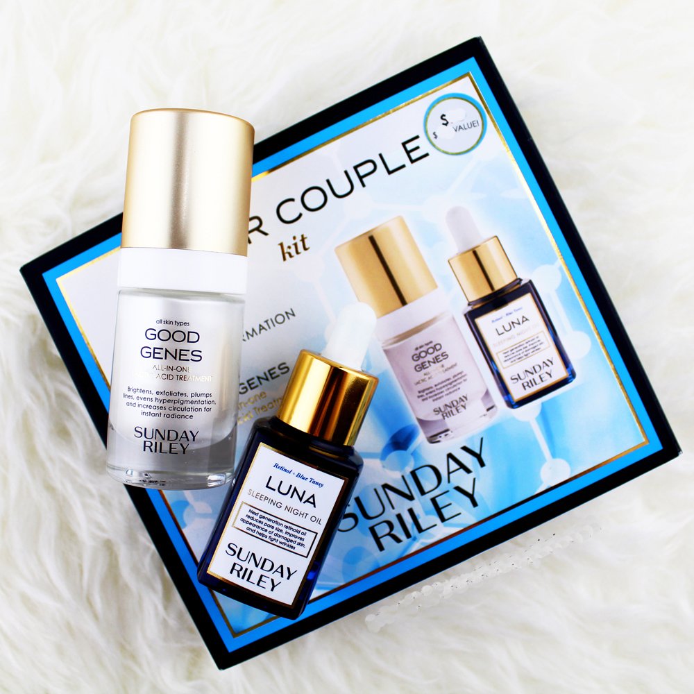 Là một bộ đôi kết hợp sức mạnh của axit glycolic (một loại AHA) và este retinol để tẩy tế bào chết sâu và làm sáng da để có làn da rạng rỡ, mịn màng hơn rõ rệt. Khi sử dụng cùng nhau, Set dưỡng và chống lão hoá da Sunday Riley Power Couple Kit cho thấy làn da trông rạng rỡ hơn, mịn màng hơn đồng thời làm sáng rõ rệt sự xuất hiện của các đốm đen và sạm màu. Chứa axit glycolic sạch, siêu tinh khiết, không chứa formaldehyde, Good Genes giúp hồi sinh làn da xỉn màu, tắc nghẽn và bị tổn thương do ánh nắng mặt trời mà không ảnh hưởng đến những gì quan trọng nhất đối với bạn: an toàn, chất lượng và kết quả nhanh chóng. Luna hoạt động suốt đêm để mang lại làn da sáng và đều màu tươi trẻ vào buổi sáng.