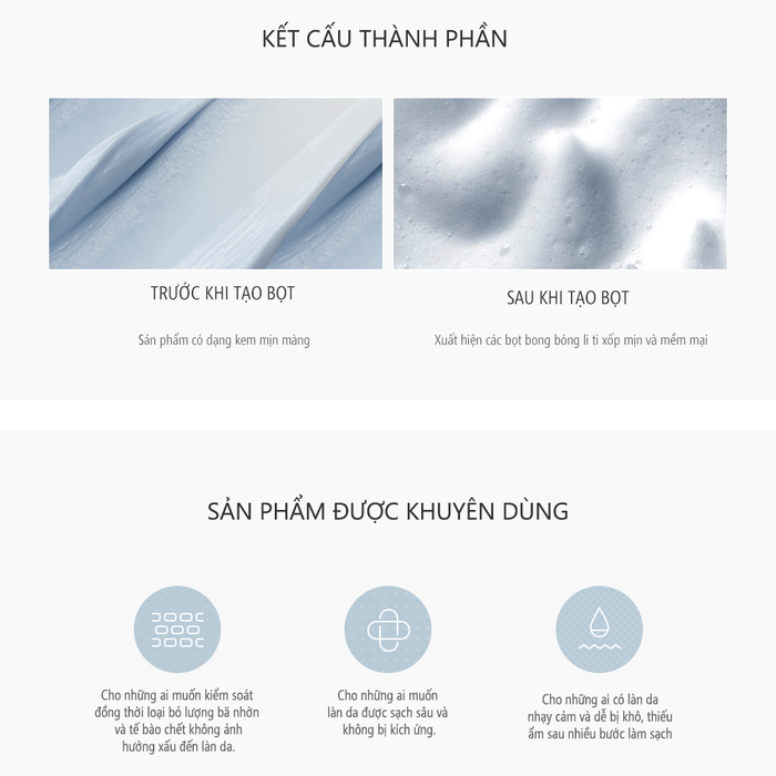 Lấy một lượng sữa rửa mặt vừa đủ ra tay, xoa đều với nước để tạo bọt bong bóng. Sau đó xoa đều lên toàn bộ mặt, nhẹ nhàng massage và rửa sạch bằng nước ấm.