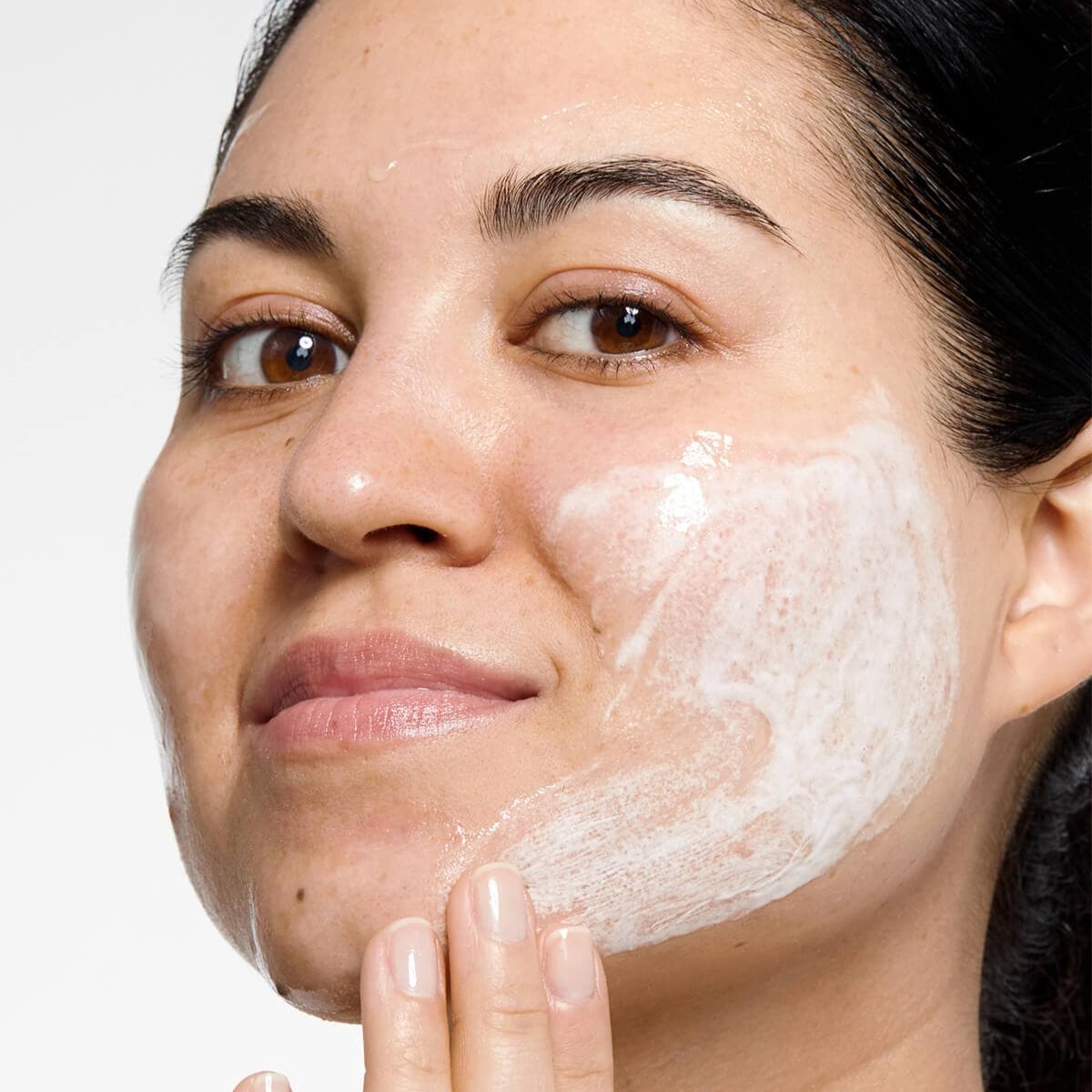 – Làm ướt mặt bằng nước ấm, xoa lượng vừa đủ sữa rửa mặt vào lòng bàn tay và massage đều xung quanh mặt và cằm. Sau đó rửa sạch lại bằng nước ấm.