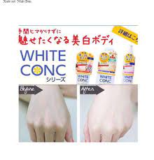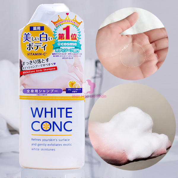 Sữa tắm trắng WhiteConc của nhật có tác dụng trắng da, làm tan hắc tố da nhanh, làm cho da trắng hồng tự nhiên, tái tạo mô tế bào mềm mại trắng hồng và đặt biệt là trắng da mà không làm tổn hại cho làn da. Chứa nhiều thành phần thiên nhiên, có tác dụng làm trắng, thường được sử dụng trong các công thức dưỡng trắng da mặt như :