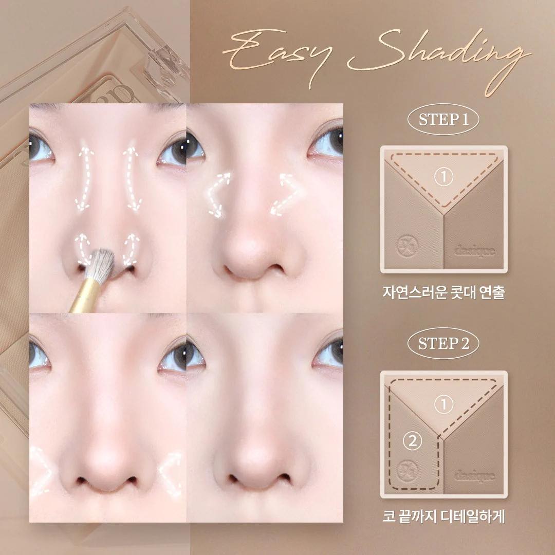 + Dasique V Cut Blending Shading để đánh highlight vùng chữ T, tạo hiệu ứng sống mũi dọc dừa, đánh vùng xương quai hàm và quanh khuôn mặt để có một khuôn mặt V-line.