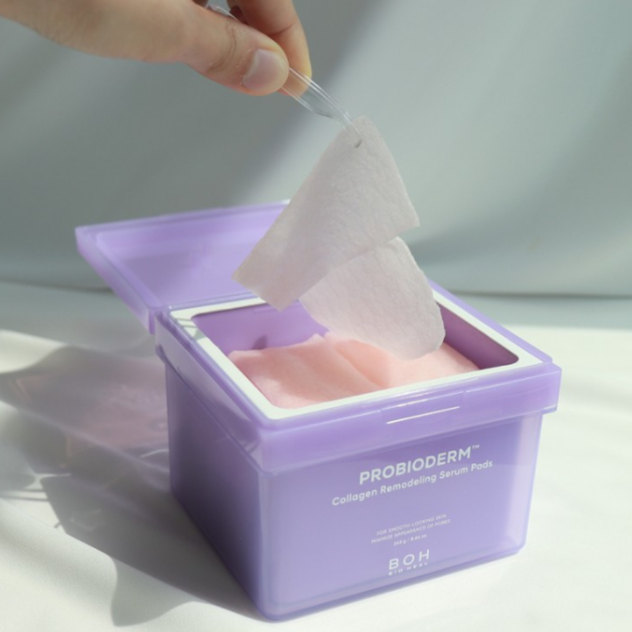 Toner Pad BOH Probioderm Collagen Remodeling Serum 245gr giúp thu nhỏ lỗ chân lông, kiểm soát bã nhờn và cải thiện kết cấu da với hiệu quả dưỡng ẩm sâu và làm căng mịn. Những miếng bông tẩy trang đa năng này cung cấp độ ẩm tức thì cho da và mang lại lớp nền mịn màng, săn chắc, thích hợp sử dụng như khăn lau toner hoặc mặt nạ.