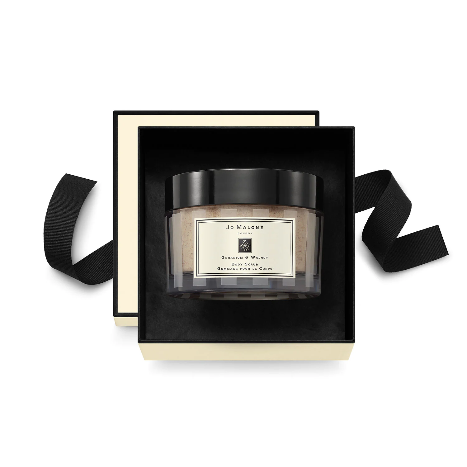 Dòng sản phẩm tẩy tế bào chết toàn thân Jo Malone London Geranium & Walnut Body Scrub với tinh chất từ vỏ quả óc chó và dầu hướng dương sẽ giúp loại bỏ hoàn toàn lớp da chết trên da, giúp làn da đang thô ráp, xỉn màu trở nên trắng sáng và mịn màng hơn rất nhiều. Sản phẩm này của Jo Malone đã giành giải thưởng Best of Beauty 2018 trong hạng mục những sản phẩm tẩy tế bào chết tốt nhất.
