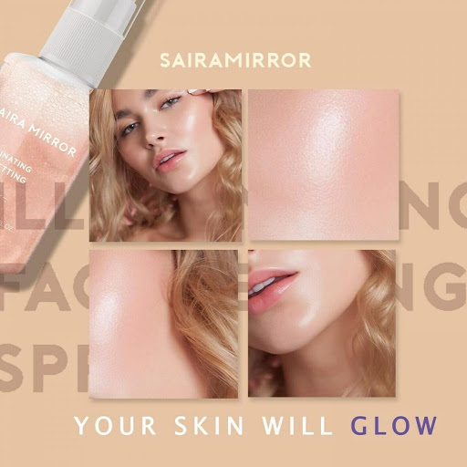 Xịt bắt sáng căng bóng da Saira Mirror Illuminating Face Setting Spray. Sản phẩm này là cứu tinh cho những nàng thích gương mặt được căng bóng như gái Hàn nhưng ngại đánh phấn bắt sáng vì sợ bị lỗi.