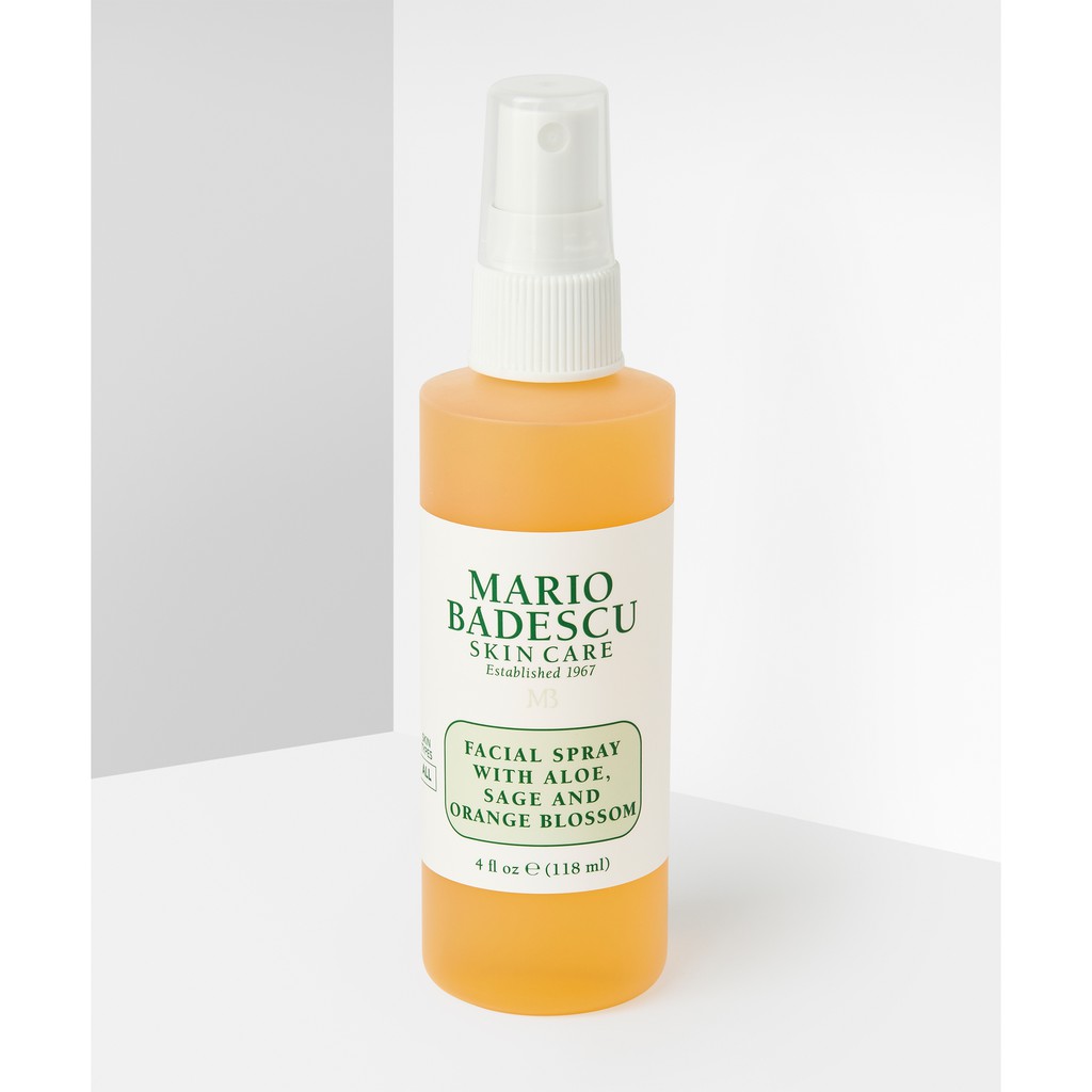 Mario Badescu Facial Spray with Aloe Sage and Orange Blossom là nước hoa hồng nói KHÔNG với cồn, thành phần cực kì thiên nhiên và lành tính, chiều chuộng yêu thương mọi loại da